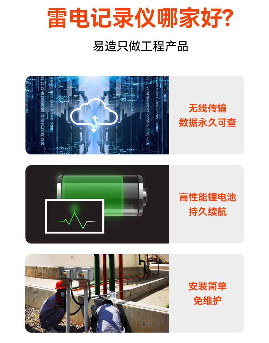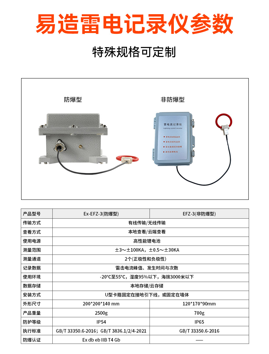 易造EFZ系列雷電流記錄儀具有防爆認證,體積小安裝方便、抗干擾能力強、可靠性高;雷電記錄儀通過無線通訊方式與軟件平臺實現(xiàn)聯(lián)動,數(shù)據(jù)自動保存、一鍵查詢;采用高性能鋰電池供電,可連續(xù)使用2-3年,維護方便。