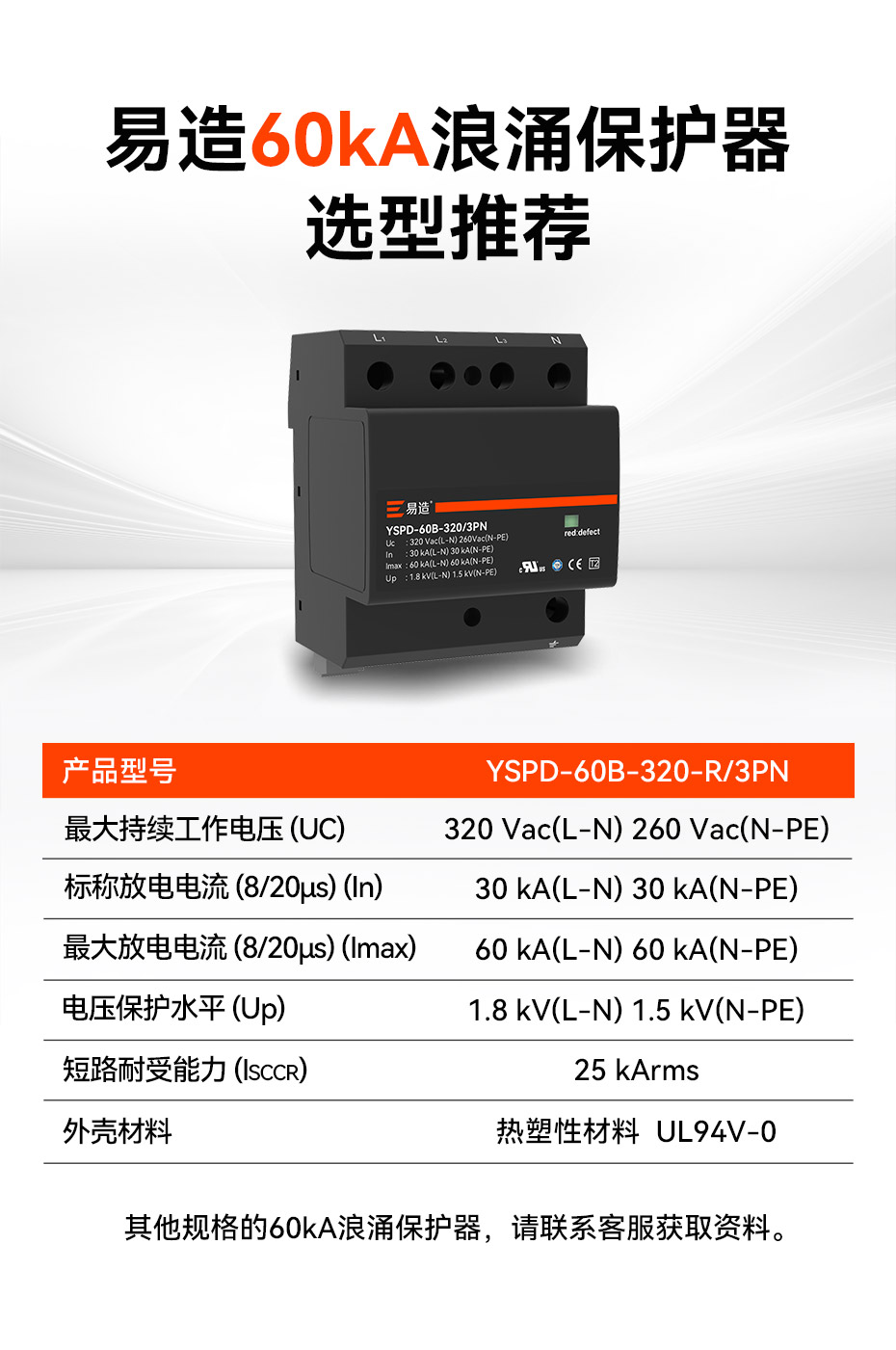 此文關(guān)鍵詞: 60kA二級(jí)浪涌保護(hù)器