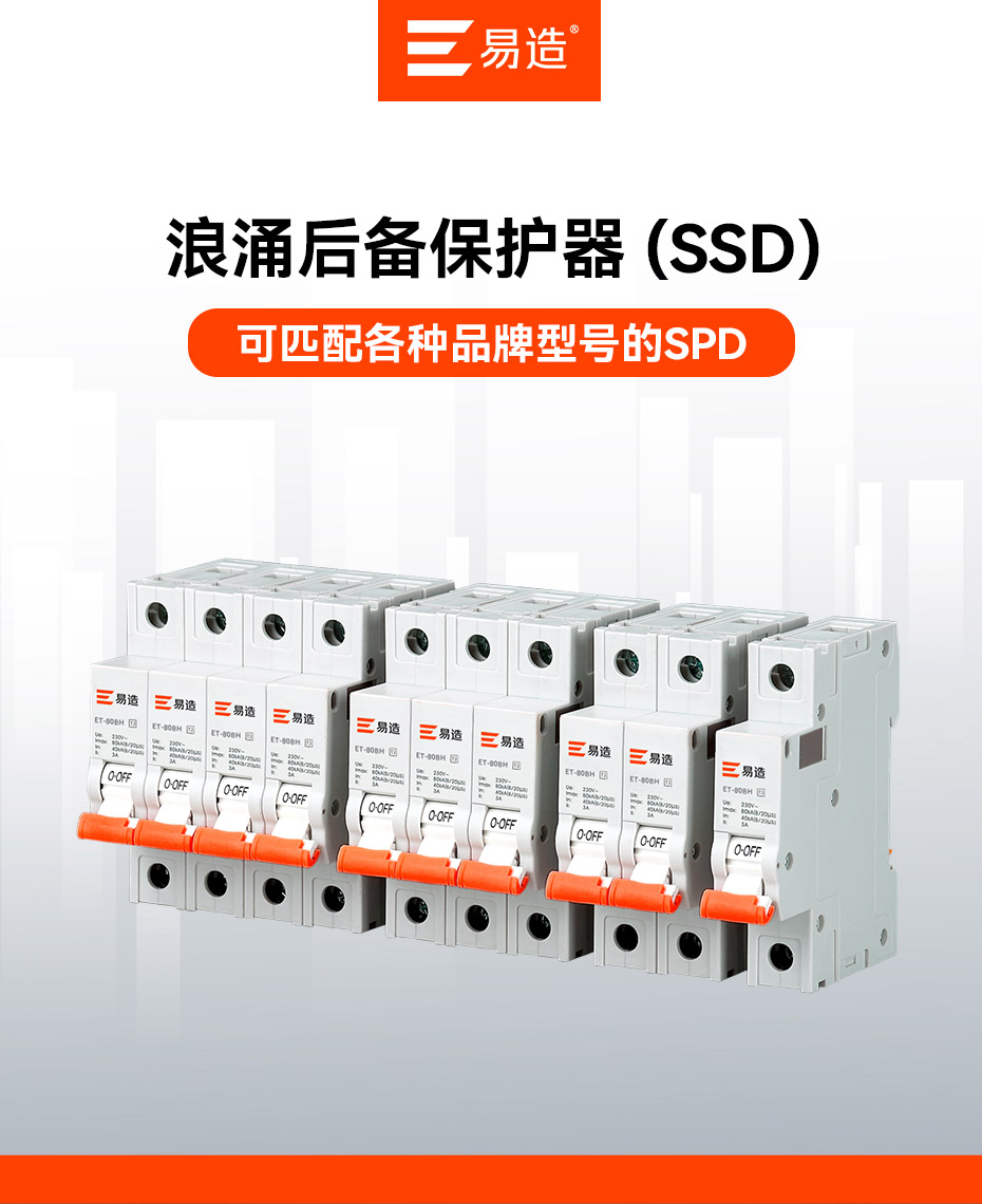 易造浪涌后備保護(hù)器是根據(jù) lEC61643-4-43中 430.3條:"在電路造成危險(xiǎn)前,應(yīng)該采用合適的過(guò)電流保護(hù)裝置"要求設(shè)計(jì)生產(chǎn)的專(zhuān)用器件.符合NB/T42150-2018《低壓電涌保護(hù)器專(zhuān)用保護(hù)裝置》標(biāo)準(zhǔn),又稱(chēng)SPD專(zhuān)用后備保護(hù)器、后備保護(hù)器、SCB脫離器或SSD.