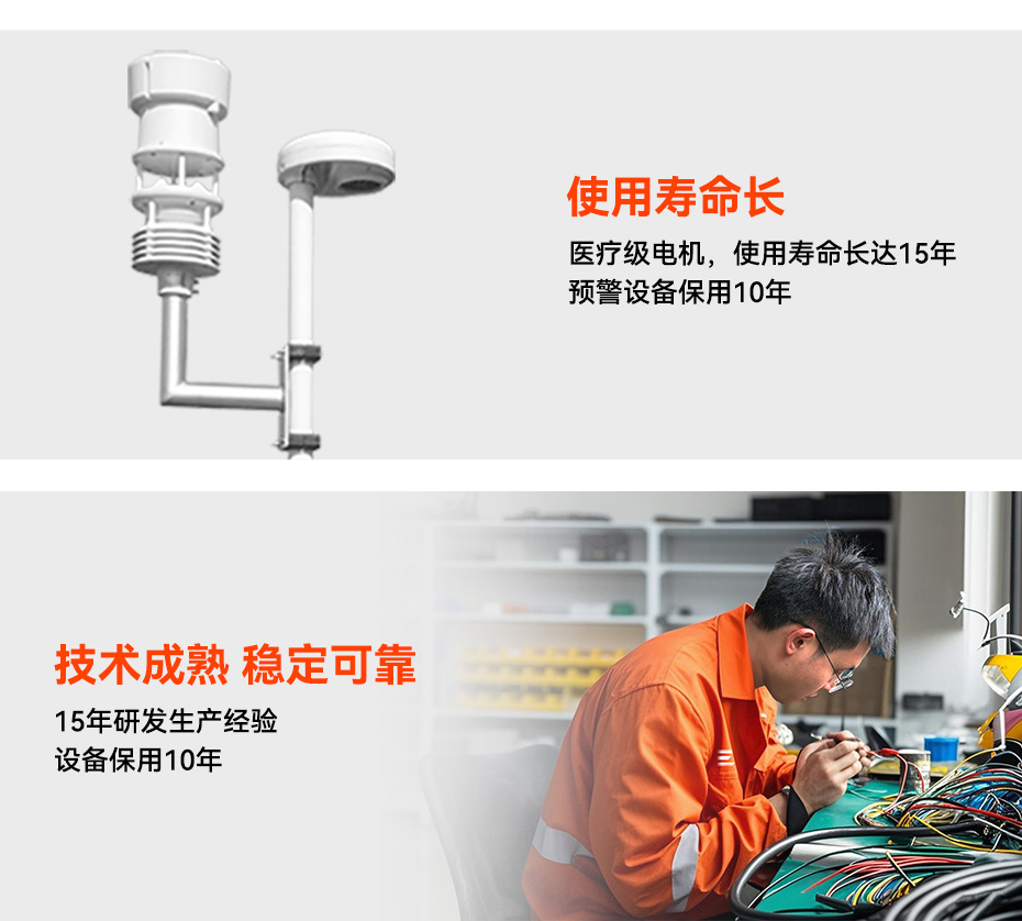 易造景區(qū)雷電預(yù)警系統(tǒng),可實(shí)時(shí)監(jiān)測(cè)景區(qū)20公里范圍內(nèi)的雷電活動(dòng),并可提前30分鐘發(fā)出黃橙紅三級(jí)雷電警報(bào),及時(shí)通知景區(qū)工作人員采取防雷應(yīng)急預(yù)案,停止索道、纜車運(yùn)行,引導(dǎo)疏散游客進(jìn)入裝設(shè)防雷裝置的建筑物內(nèi),確保游客的生命安全。IP65預(yù)警探頭具有WF2防腐等級(jí),可在各種環(huán)境條件下長(zhǎng)期穩(wěn)定運(yùn)行,使用壽命長(zhǎng)達(dá)10年以上。