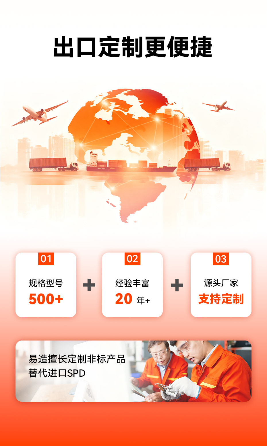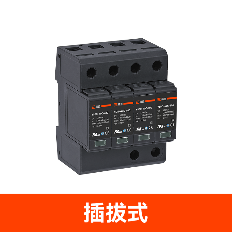 易造二級40kA插拔式浪涌保護器,最大持續(xù)工作電壓Uc涵蓋60Vac-1500Vac,用于電力系統(tǒng)的單相和三相防雷保護擁有UL/CSA、TUV、CE等國際質(zhì)量認證,符合全球市場的最高安全和ROHS歐盟環(huán)保標準,可替代進口品牌SPD,支持外貿(mào)出口。