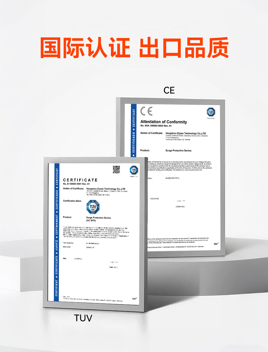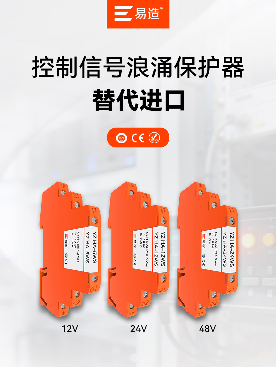 易造控制信號浪涌保護器已通過TUV、CE國際認證,符合RoHS歐盟環(huán)保標(biāo)準(zhǔn),可替代進口品牌SPD,支持外貿(mào)出口定制。